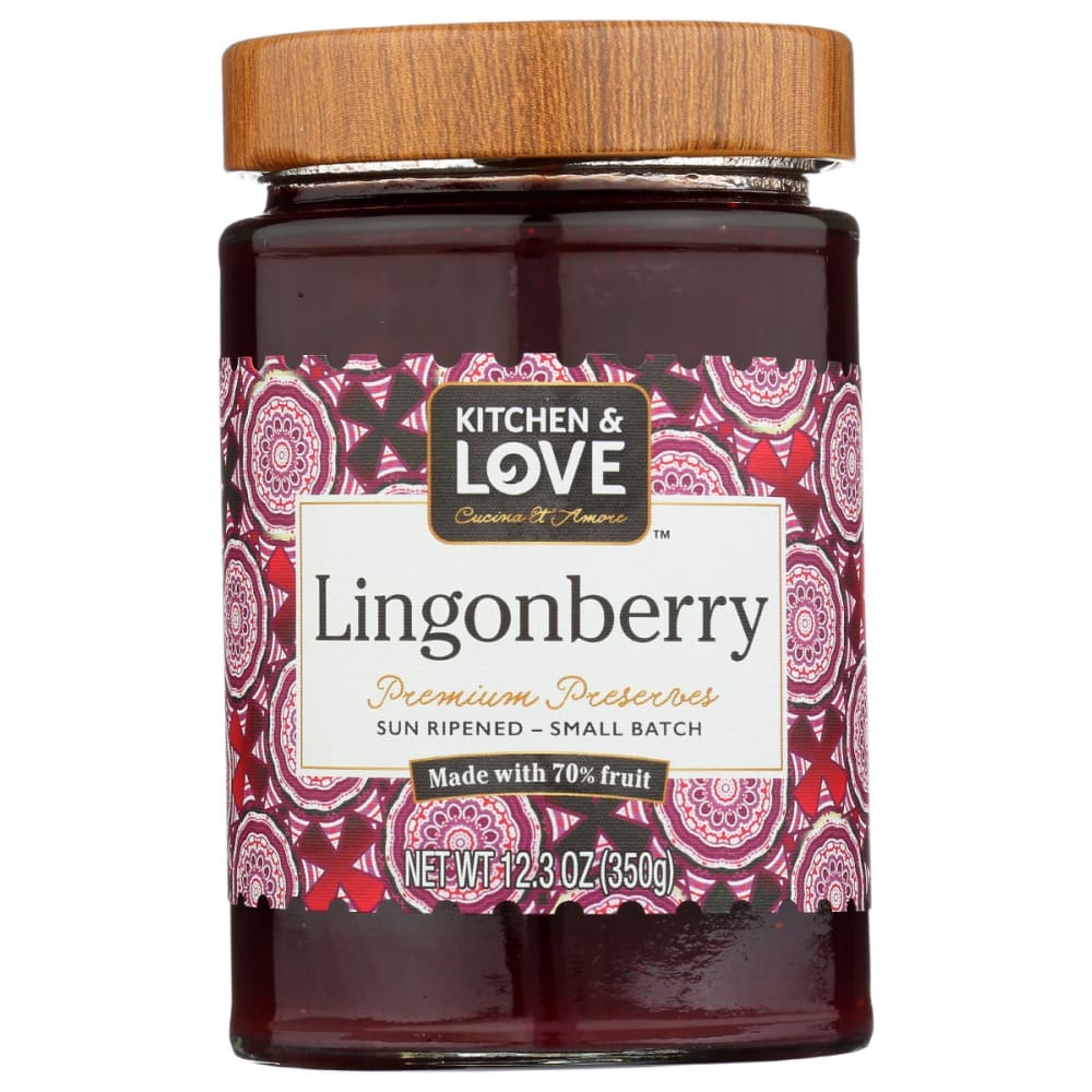 Each jar of Kitchen & Love® Artisan Lingonberry Preserves is filled 70% with zesty lingonberries. The undeniably sumptuous sweet-tart taste of these little red berries from Northern Europe makes every spoonful a delectable enjoyment. The brilliant red color and fresh taste make our Lingonberry Preserves ideal for spreading on toast, pairing with cheeses, as a glaze on meats, or as an ingredient in salad dressings and a variety of recipes.