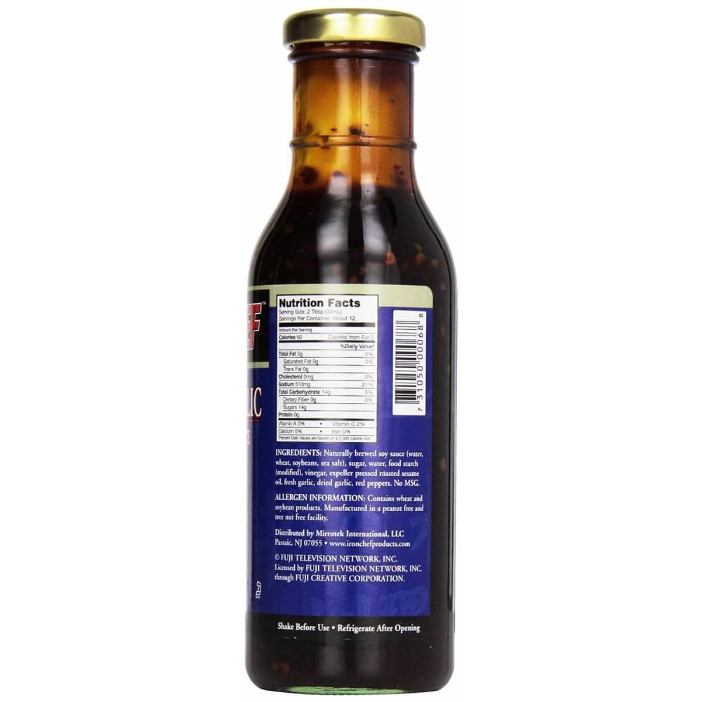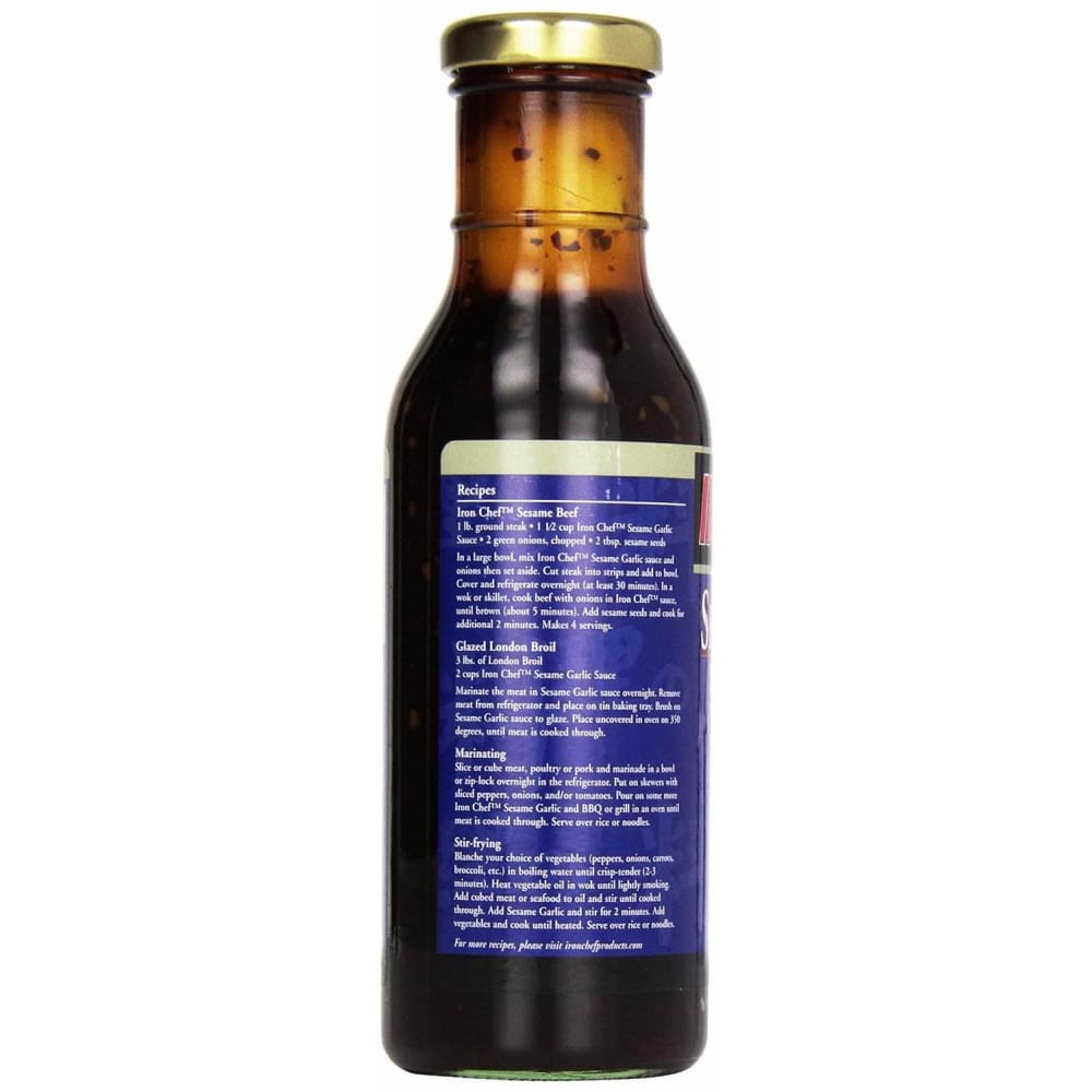 Iron Chef Sesame Garlic Sauce & Marinade is a spicy and mildly sweet sauce made from a rich blend of soy sauce, garlic and spices with the aroma of sesame oil. Iron Chef Sesame Garlic is made using all natural ingredients and certified kosher (Kof-K parve). Delicious as a dipping sauce.