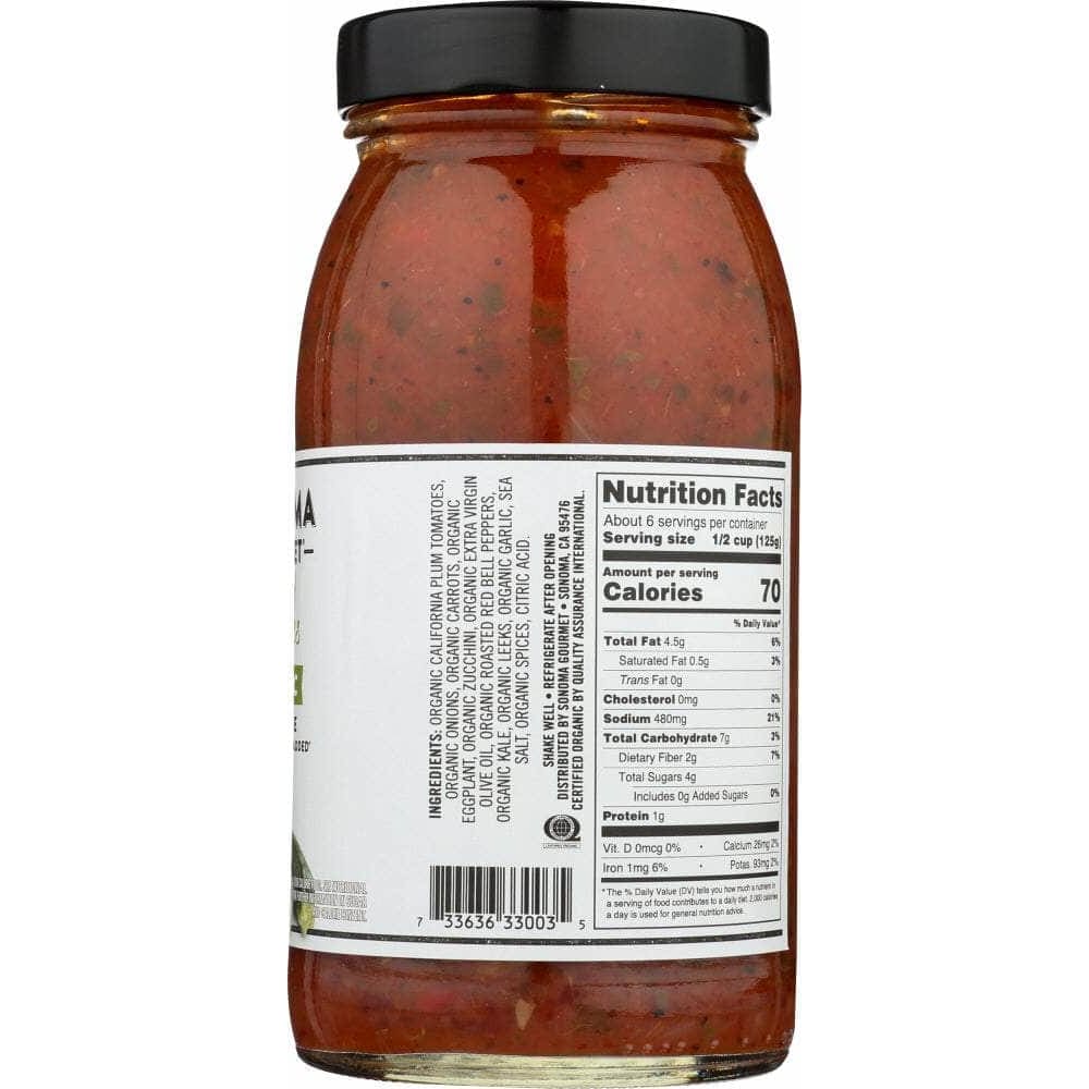 Delightfully chunky! We use all organic plum tomatoes, eggplant, zucchini, onions, carrots and garlic with a special blend of herbs, spices and organic extra virgin olive oil for the perfect combination of fresh flavors and textures.
