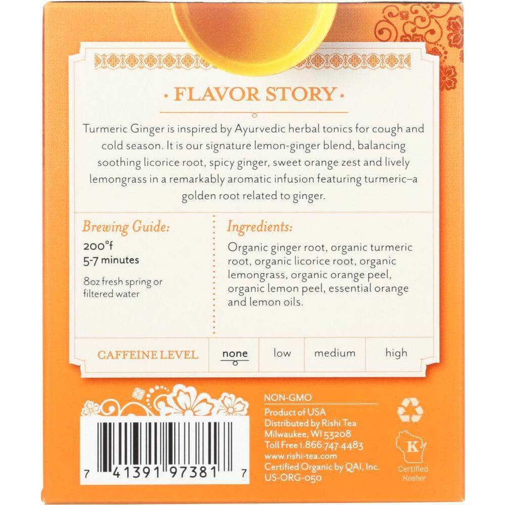 Rishi Tea Turmeric Ginger Tea 15 Tea Bags, 49.5 gm (Case of 2)