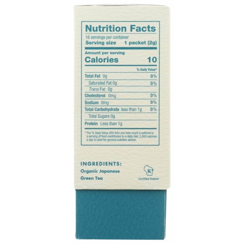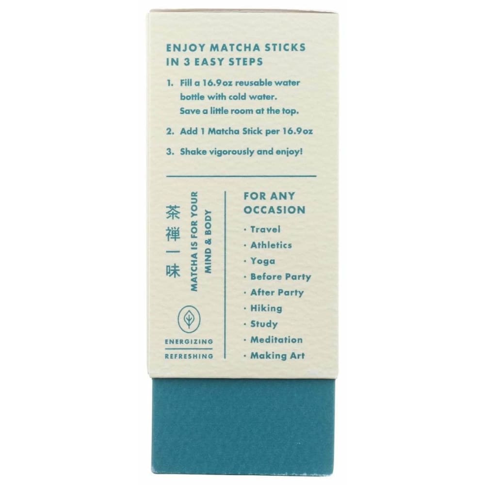 Experience the vivid, clean energy of 100% pure and unsweetened authentic Japanese matcha.  Each single-serve stick pack contains a full 2.0g of premium stone-milled Japanese Matcha.