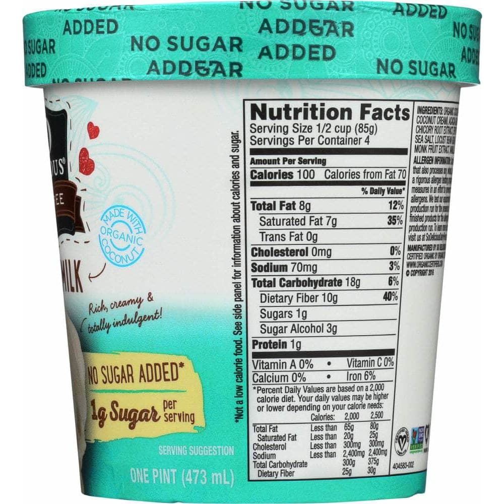 Not only is this dairy-free, coconutmilk based, frozen dessert rich and creamy, but it has no sugar added. *Monk Fruit Extract adds a negligible amount of sugar
