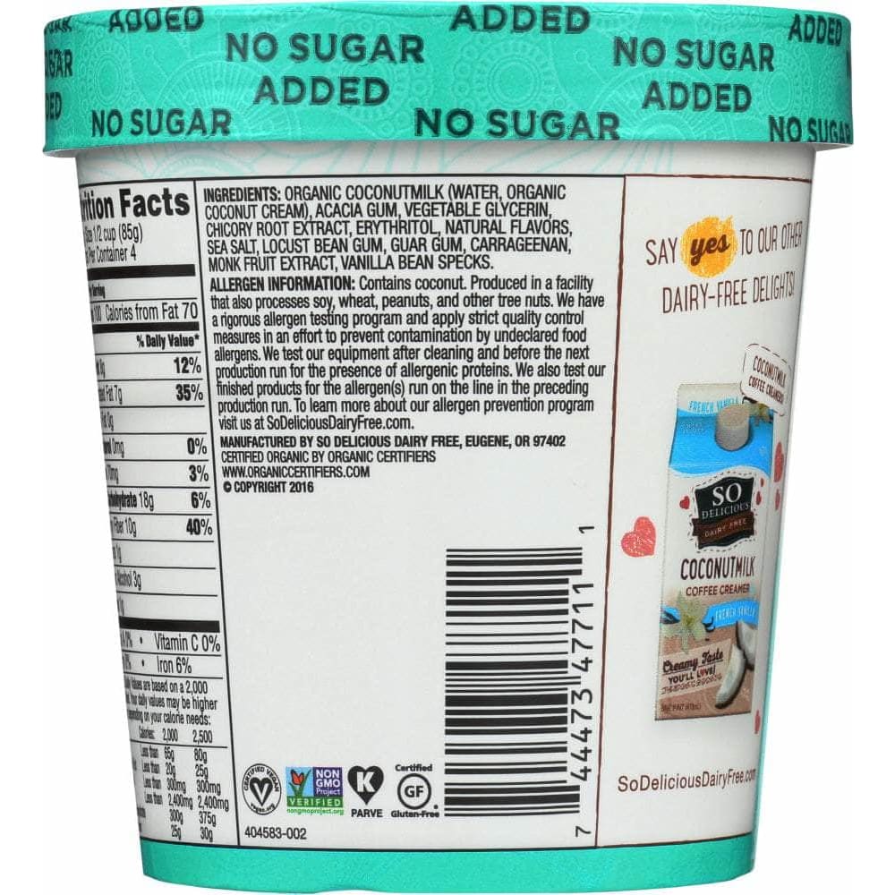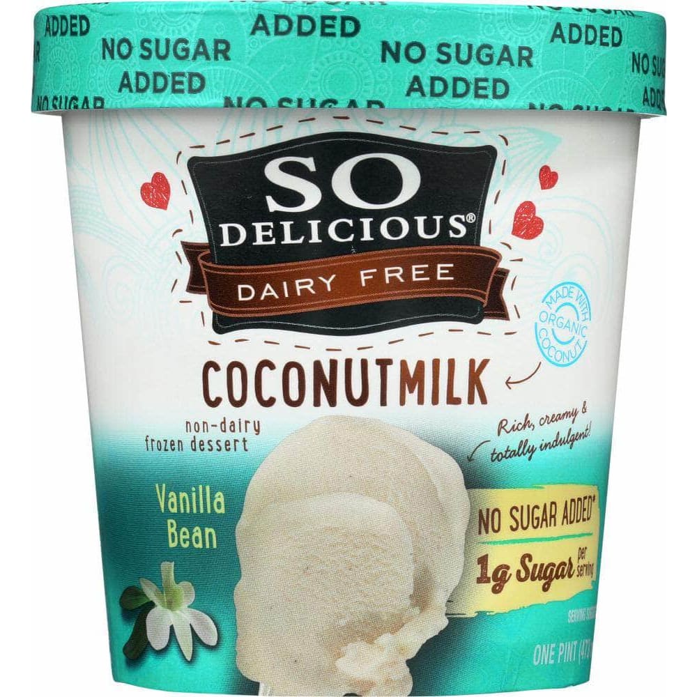 So Delicious Frozen Dessert No Sugar Added Vanilla Bean, 16 oz (Case of 3)