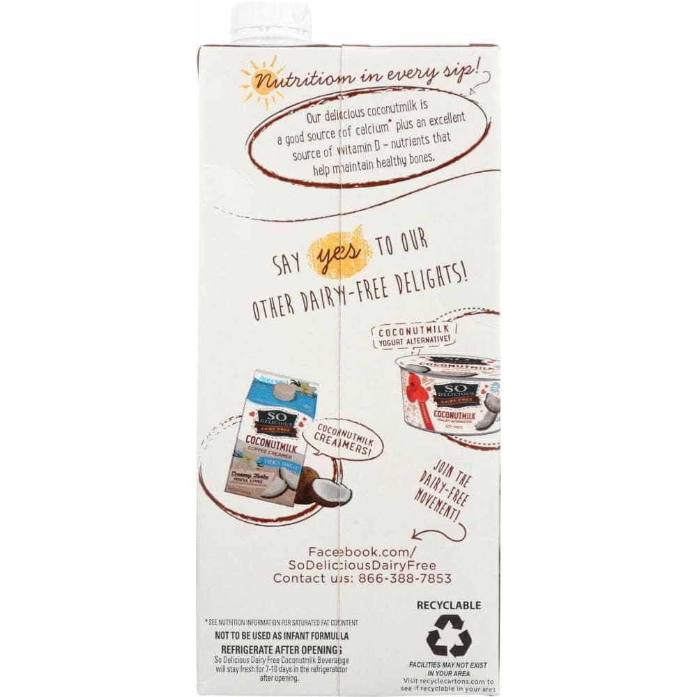 Slide over Soymilk and move over milk, So Delicious Chocolate Coconutmilk Beverage is here! This delicious beverage goes great in any chocolaty recipes or just poured into a tall glass.