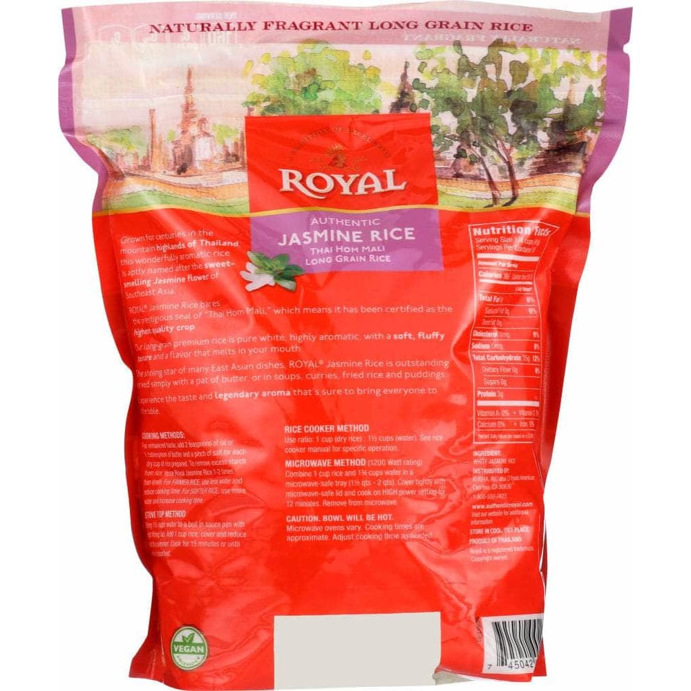 As Fragrant as the Flower that Inspired Its Name.Grown for centuries in the mountain highlands of Thailand, this wonderfully aromatic rice was aptly named after the sweet-smelling Jasmine flower of Southeast Asia. Our Royal® Jasmine Rice bares the prestigious seal of “Thai Hom Mali,” which means it is unparalleled in excellence. The shining star of so many Asian dishes, this prime-quality grain is soft, white, fluffy, with a “melt in your mouth” flavor, and a legendary fragrance that’s sure to bring everyone to the table.