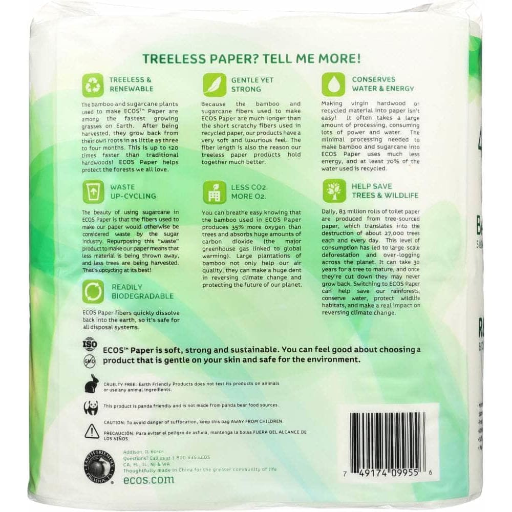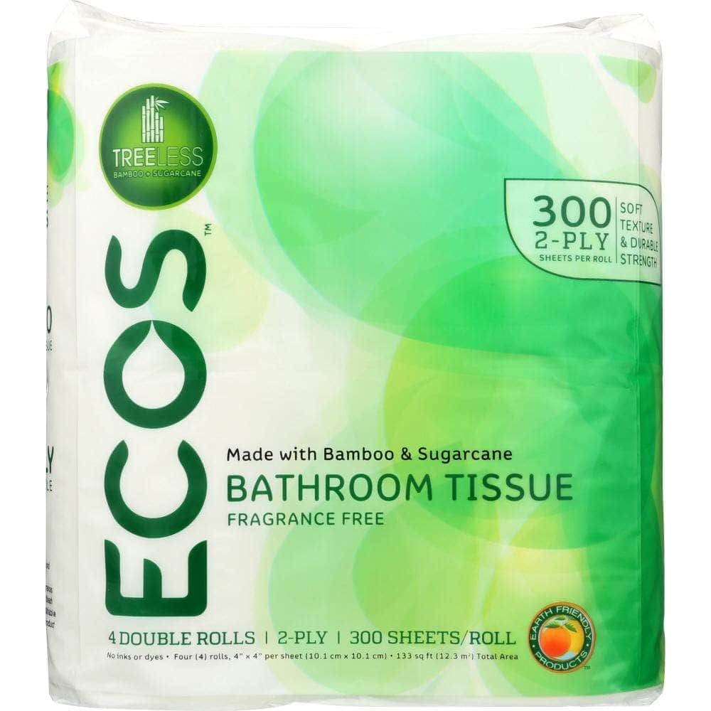 Made from renewable bamboo and sugarcane, our ECOS™ Treeless Paper products are the soft and strong alternatives to recycled paper. Readily biodegradable, ECOS™ Treeless Toilet Paper is free of inks, dyes and fragrances. 300 2-ply sheets per roll.