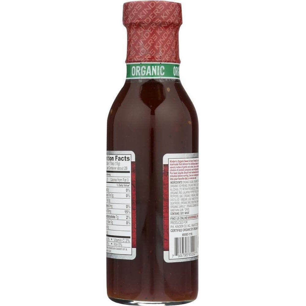 Kinder's Organic Sweet & Spicy Teriyaki is a versatile sauce & marinade that delivers the delicious balance of sweet & heat with savory notes of garlic and onion. Delivering quality since 1946, Kinder's has achieved an unmatched taste! Our marinades are non-GMO, contain no high fructose corn syrup and are USDA certified organic. Kinder's-where clean eating meets delicious flavor that'll have you craving more!