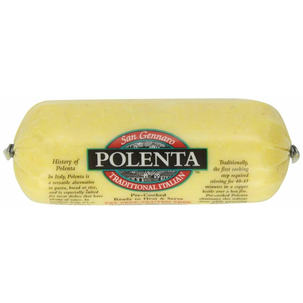 San Gennaro Polenta comes pre-cooked, so it is ready to heat and serve. A great alternative to rice or pasta, this versatile product is a great addition to any meal! As close to home cooked as it gets. Our Traditional Polenta is based on the authentic flavors of slow cooked polenta. Enjoy by itself or add any number of ingredients to compliment your meal! Gluten free, fat free, cholesterol free, kosher product, and shelf stable for 9 months.