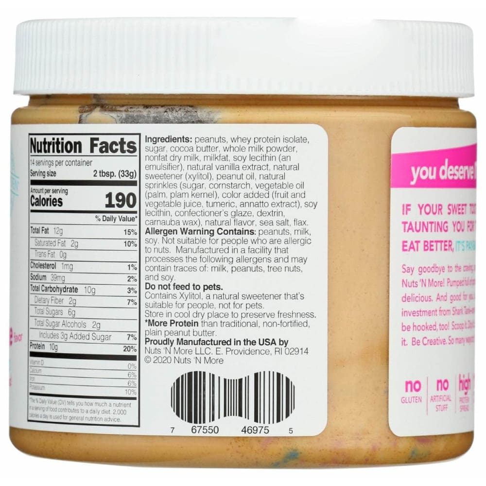 NUTS N MORE: Birthday Cake High Protein Peanut Butter Spread, 16.3 oz