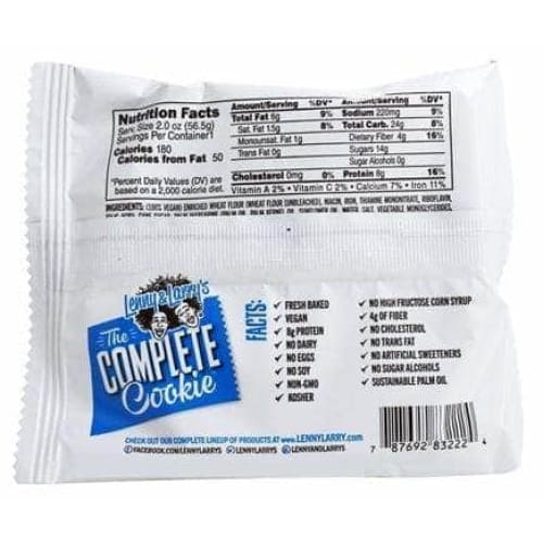 At Lenny and Larry’s, The Chocolate Chip Complete Cookie has been a crowd-pleaser since the day we set up shop. Satisfyingly firm and chewy, our delectable chocolate chip cookie is lovingly sprinkled with sizeable semi-sweet morsels of chocolate throughout. Keep with tradition by pairing your cookie with a tall glass of ice cold milk.