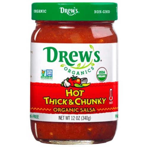 Drews Hot Thick & Chunky Medium Salsa Organic, 12 oz (Case of 4)