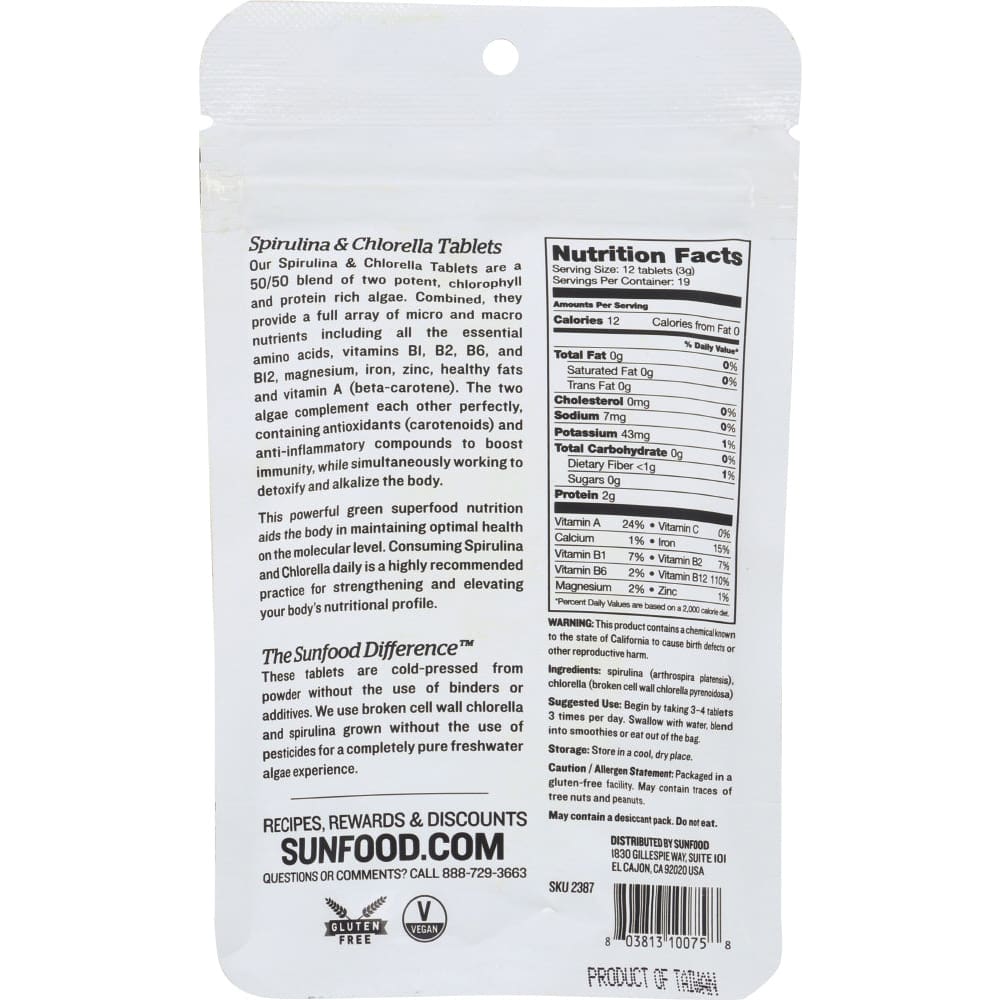 SUNFOOD SUPERFOODS: Spirulina Chlorella Tablets, 2 oz
