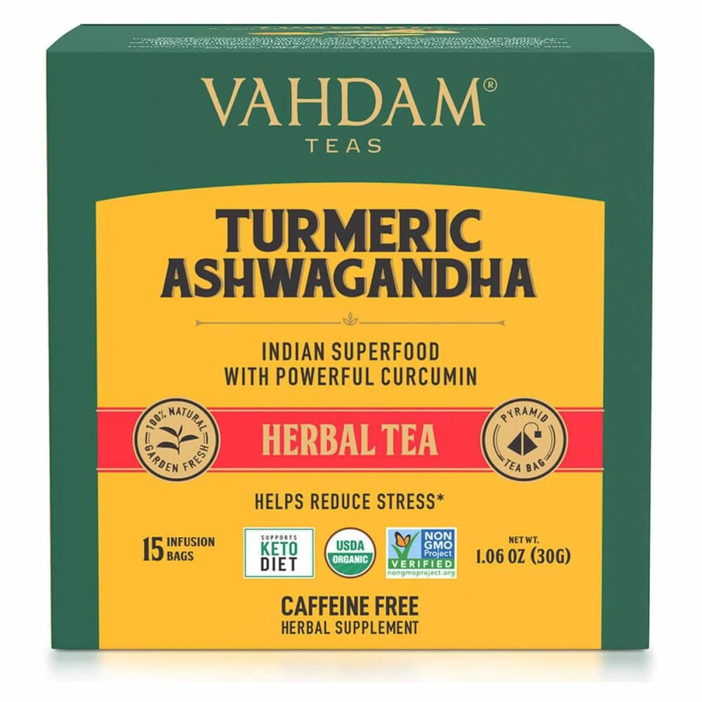 Vahdam Teas Tea Tumeric Ashwgnda Herbal, 1.06 Oz (Case of 3)