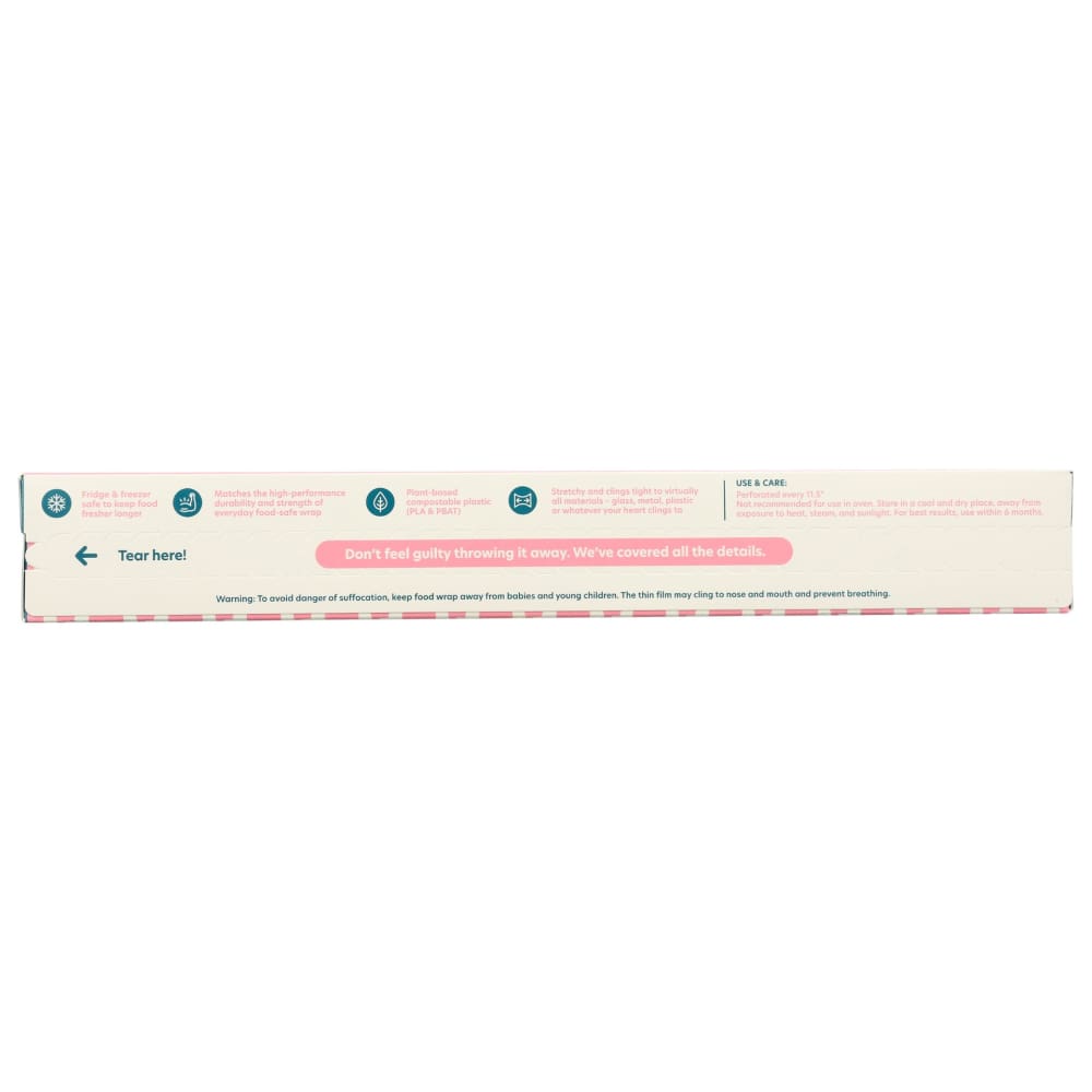 High-performance stretch, tight cling, in perforated squares for easy useMade with plants (PLA & PBAT) that break down into carbon and waterMeets internationally-recognized standards to safely biodegrade in municipal or commercial composting facilities100sq ft (9.3㎡) | 11.8” x 101.7’ (30cm x 31m)Ideal for storing leftovers in fridge or freezer