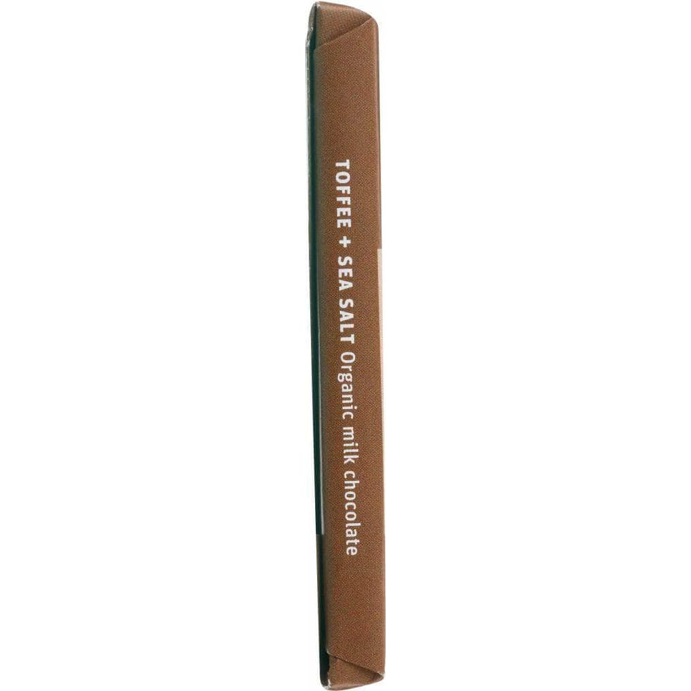 Open at your own risk. We've made a Toffee + Sea Salt bar that's so addictively good you might not be able to put it down. Until it's too late.Organic toffee with extra butter is blended into our 54% organic and fair trade milk chocolate, then sprinkled with a dash of Pacific sea salt. The result is a luscious dark milk chocolate bar defined by rich caramel notes, heightened by sea salt, and intensified with a toffee crunch. Organic and Fair Trade Certified.