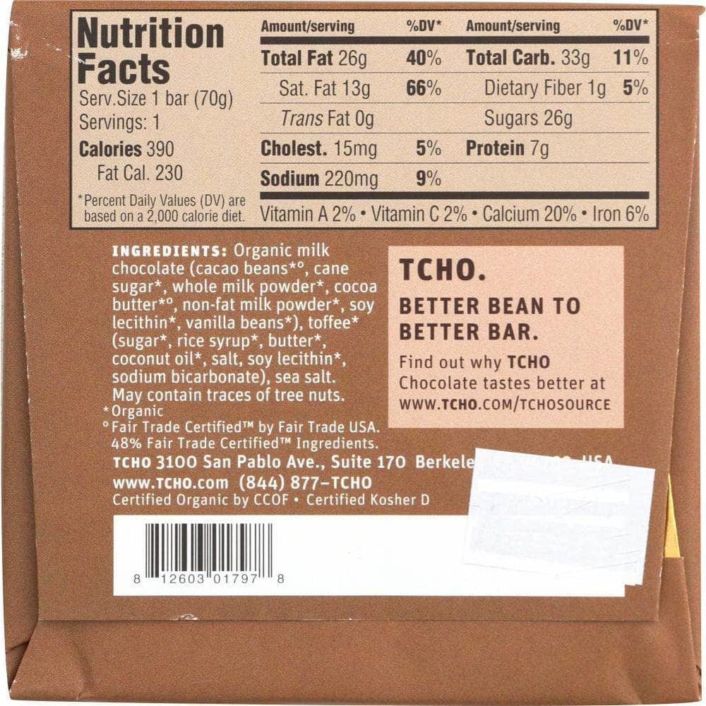 Tcho Toffee + Sea Salt Chocolate Bar, 2.5 Oz (Case of 4)