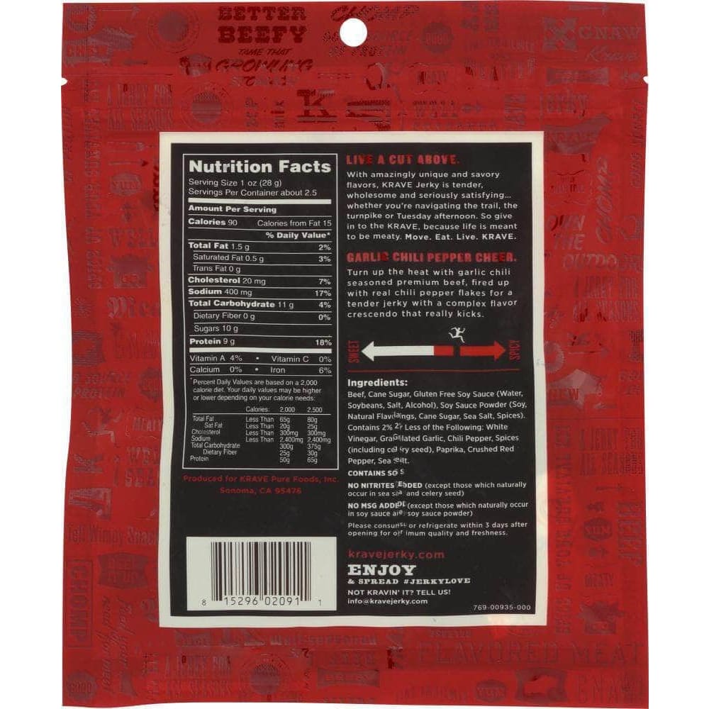 Krave Beef Jerky Garlic Chili Pepper 2.7 Oz (Case of 3)