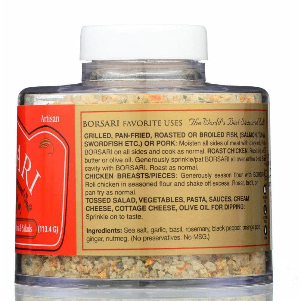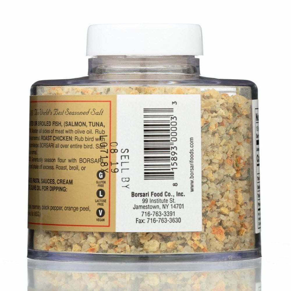 Borsari's ORANGE-GINGER Seasoned Salt combines pure sea salt with fresh herbs, garlic, orange peel and selected spices. Slowly cured over a period of days, this incredible seasoning is rich in flavor and aroma with a distinctive hint of orange and ginger. It's versatility in cooking cannot be overstated. Use it on fish, poultry, vegetables, salads and sauces.