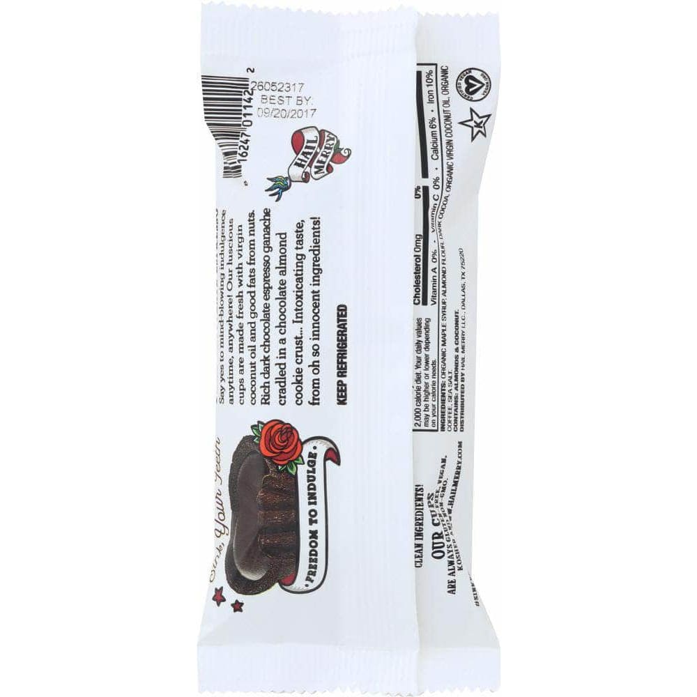 Say “HAIL YES” to mind-blowing indulgence anytime, anywhere! Our luscious Cups are made fresh with organic virgin coconut oil and heart-healthy fats from nuts, and are the perfect on-the-go snack!Rich dark chocolate espresso ganache cradled in a chocolate almond cookie crust... Intoxicating taste, from oh so innocent ingredients.