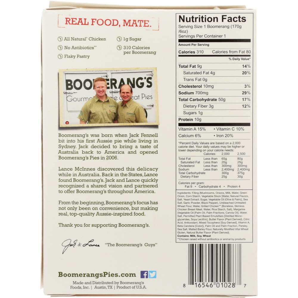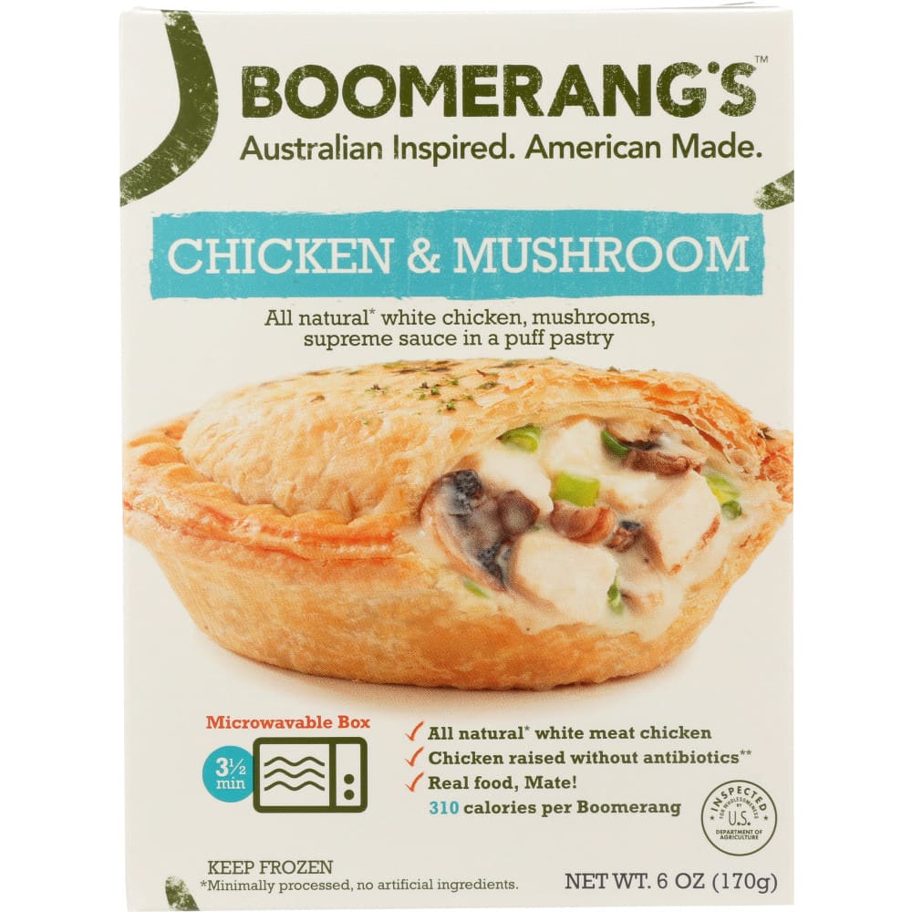 BOOMERANGS: Chicken and Mushroom Aussie Pie, 6 oz (Case of 4)