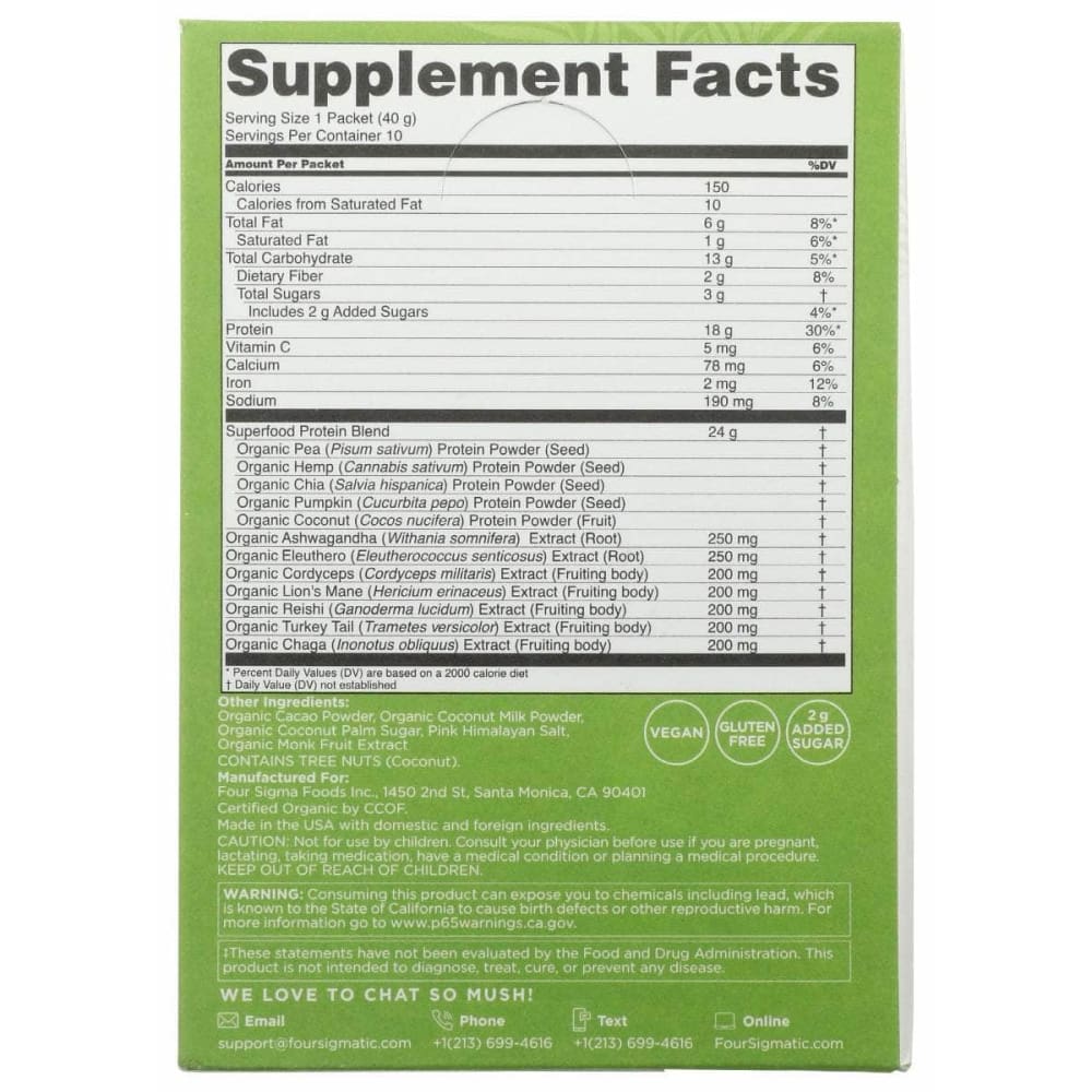 Four Sigmatic Plant Based Protein Powder Creamy Cacao Box, 14.1 Oz