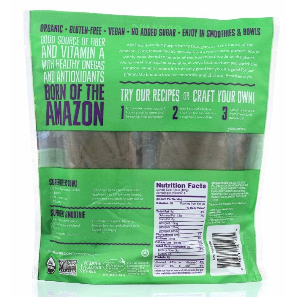 Blend of organic Açaí with kale & spinach. Perfect for blending delicious nutrition-packed green smoothies at home. 1.5 servings of fruits & veggies per pack, no added sugars. Good source of Vitamin A and fiber.