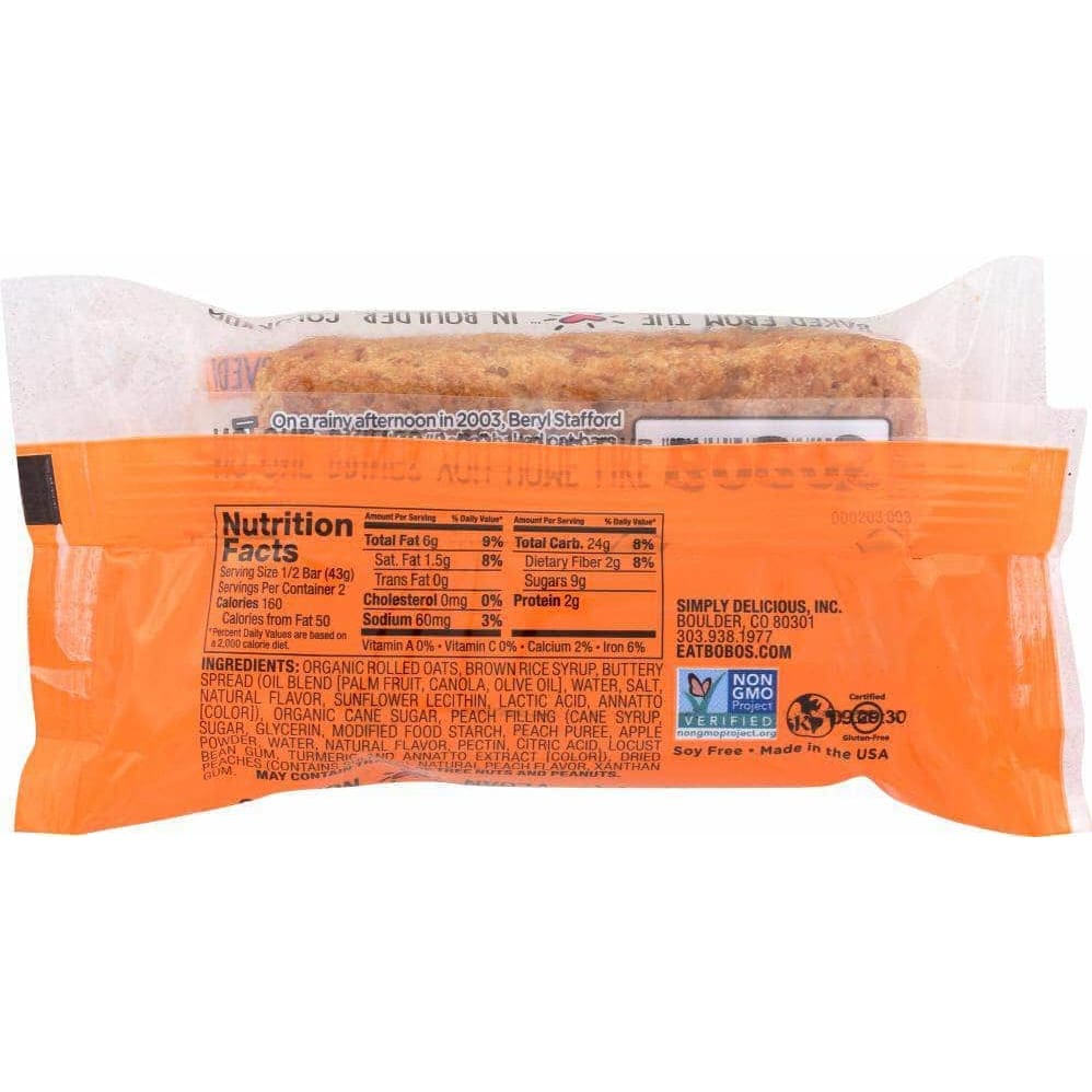 Bobo’s Gluten Free Peach Flavor has pieces of delicious peach in every bite.
