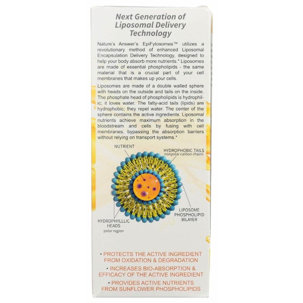 Nature's Answer's EpiFytosomes utilizes a revolutionary method of enhanced Liposomal Encapsulation Delivery Technology, designed to help your body absorb more nutrients.* Liposomes are made of essential phospholipids - the same material that is a crucial part of your cell membranes that makes up your cells. Not only is Vitamin C one of the most important antioxidants in your body, it is required to produce collagen, the protein responsible for firm, youthful skin, as well as healthy joints, gut lining, muscles, and supporting a healthy immune system. These liposomal, sunflower phospholipids surround the Vitamin C to protect and assist its transport across cell membranes for increased absorption.