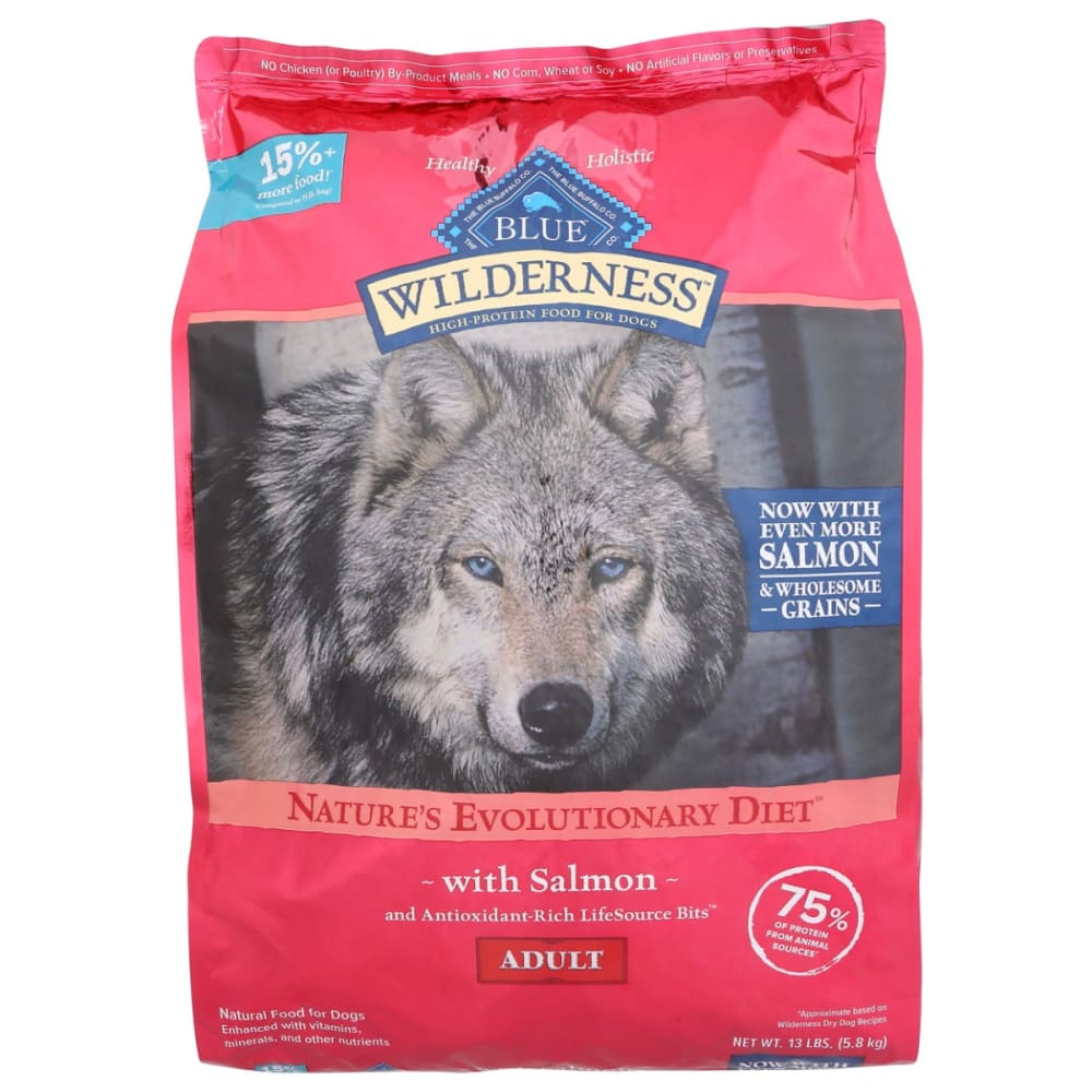 Satisfy the spirit of the wolf with meat-rich BLUE Wilderness. This high-protein recipe contains more of the delicious deboned salmon your dog loves, plus wholesome grains like oats, barley, and brown rice for healthy complex carbohydrates.