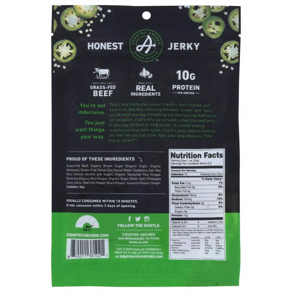 Country Archer Jerky Beef Jalapeno, 2.5 Oz (Case of 3)