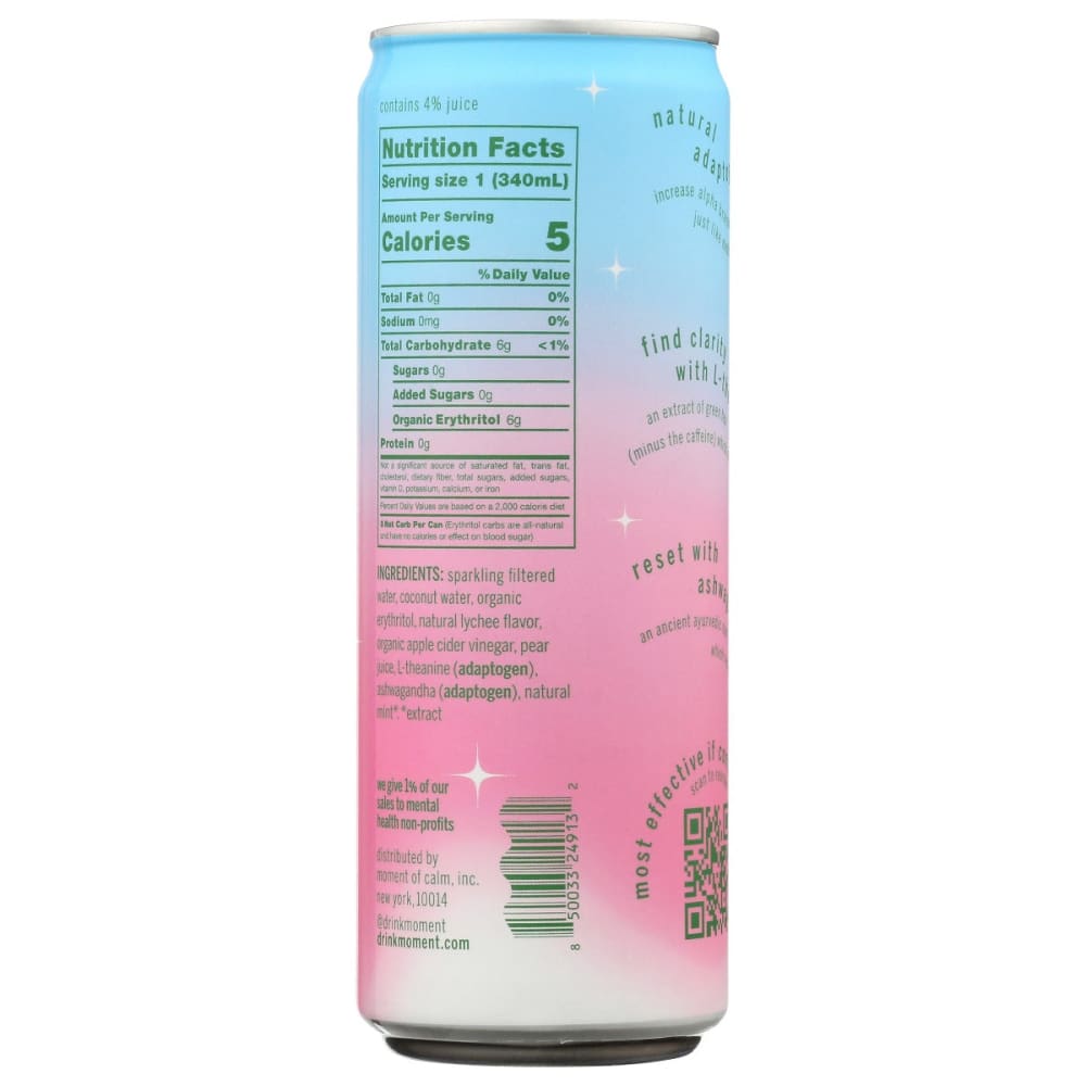 MOMENT: Lychee Mint Chlorophyll Botanical Water, 11.5 fo (Case of 4)