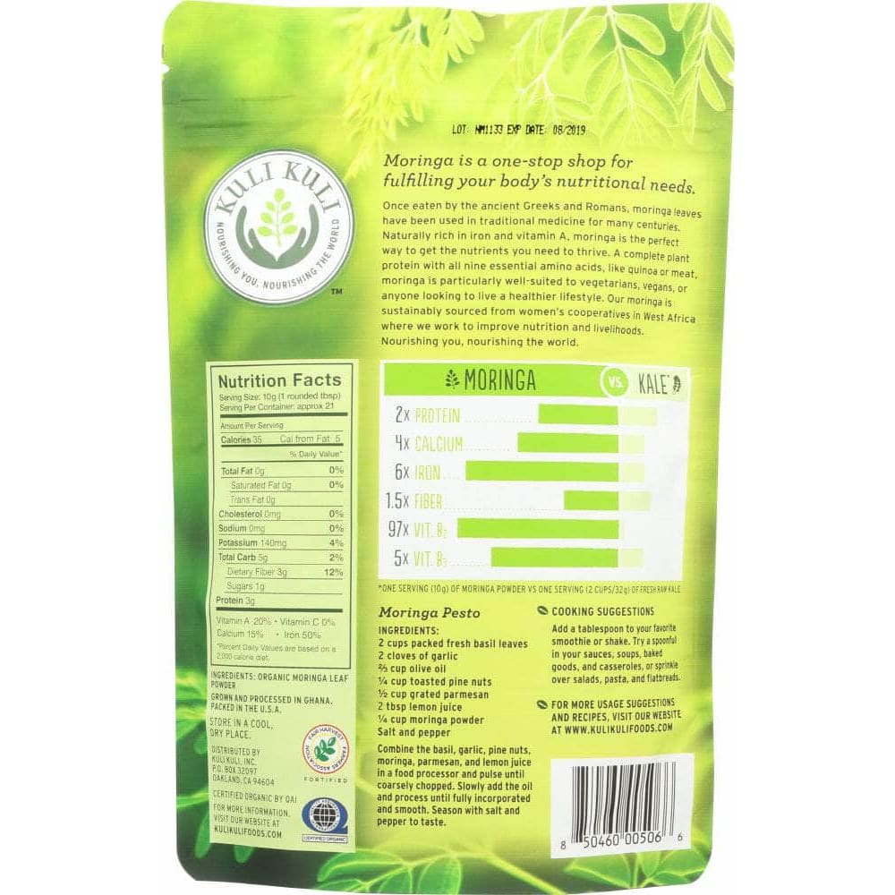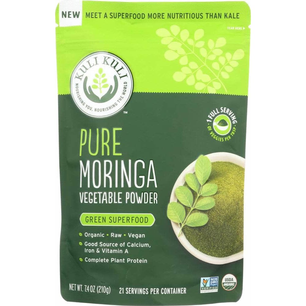 Stop spending your mornings tearing kale leaves and add a scoop of Organic Pure Moringa to your smoothie instead. Just one tablespoon of Kuli Kuli's Organic Pure Moringa Vegetable Powder is equivalent to a full serving of vegetables.