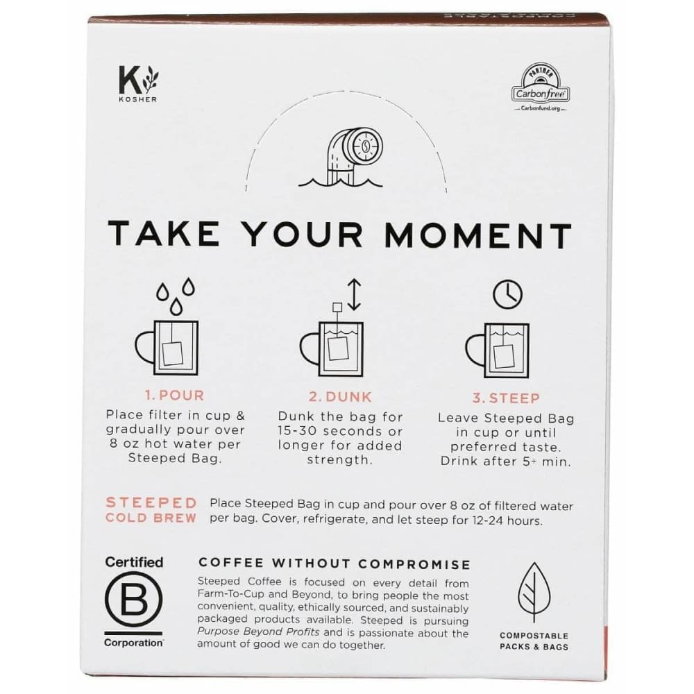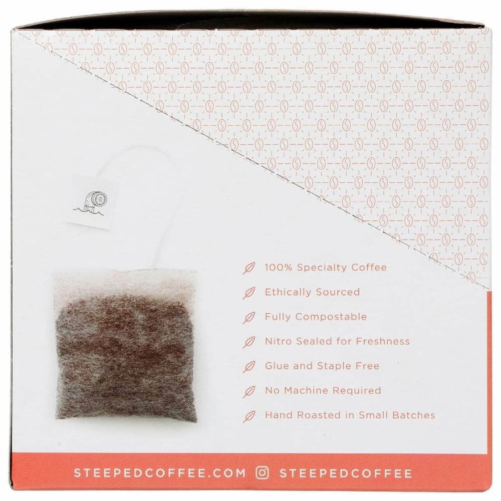 For best results, pour over 8 oz of hot water per Steeped Bag.