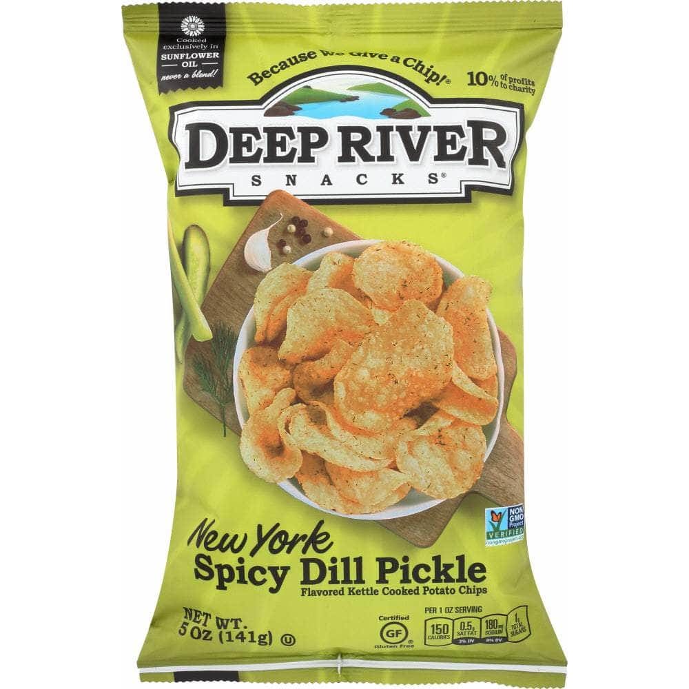 DEEP RIVER: New York Spicy Dill Pickle Kettle Cooked Potato Chips, 5 oz