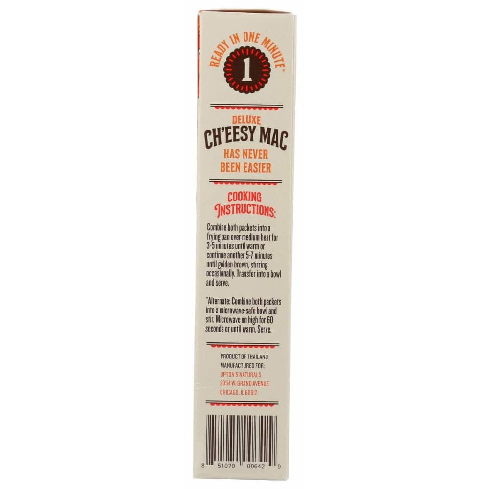 Mac is one of our favorite comfort foods and it’s a mainstay on the menu at our Chicago cafe, Upton’s Breakroom. We’ve decided to share the wealth so that you can enjoy this delicious meal when you can’t come in for a visit.We make our signature Ch’eesy Mac sauce with real, clean ingredients and pair it with cooked noodles. All you’ll need to do is mix, heat, and eat.Combine both packets into a frying pan over medium heat for 3-5 minutes until warm, or continue another 5-7 minutes until golden brown, stirring occasionally. Transfer into a bowl and serve.