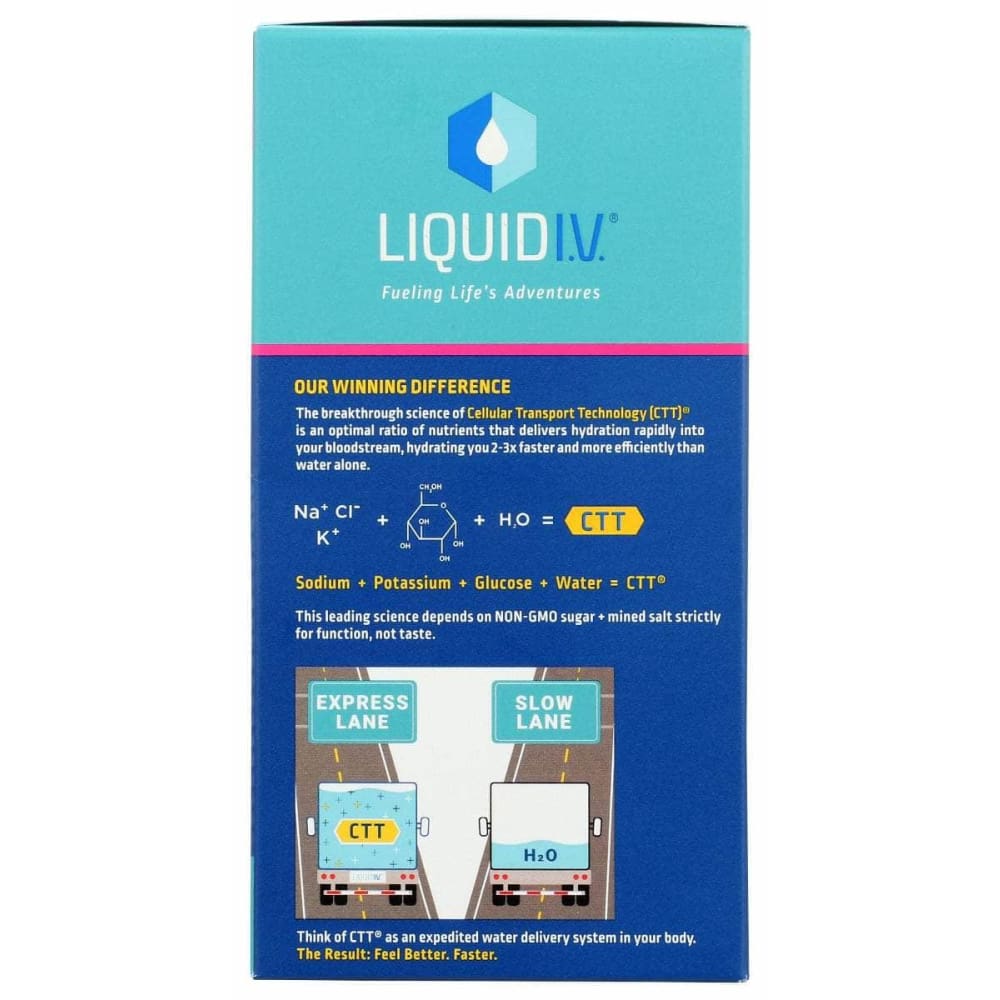 The breakthrough science of Cellular Transport Technology (CTT)® is an optimal ration of nutrients that delivers hydration rapidly into your bloodstream, hydrating you 2-3x faster and more efficiently than water alone.
