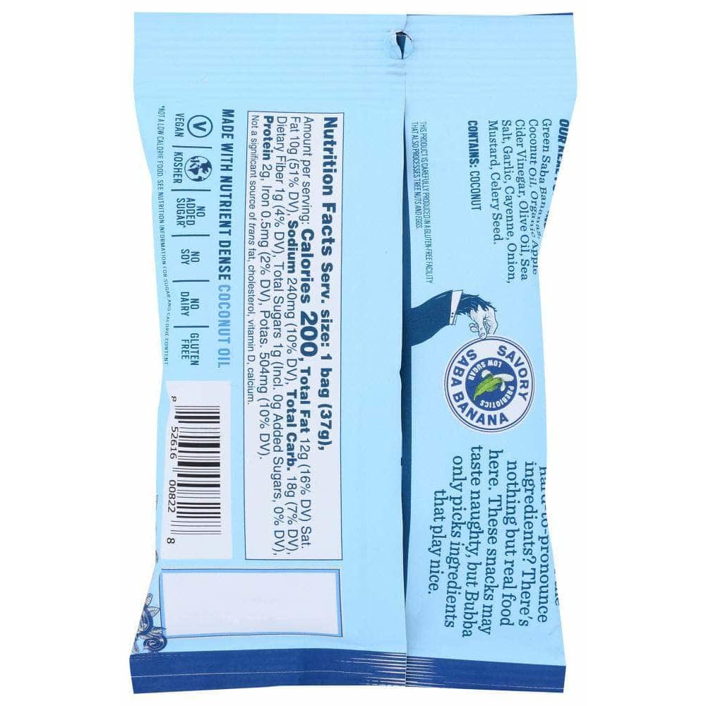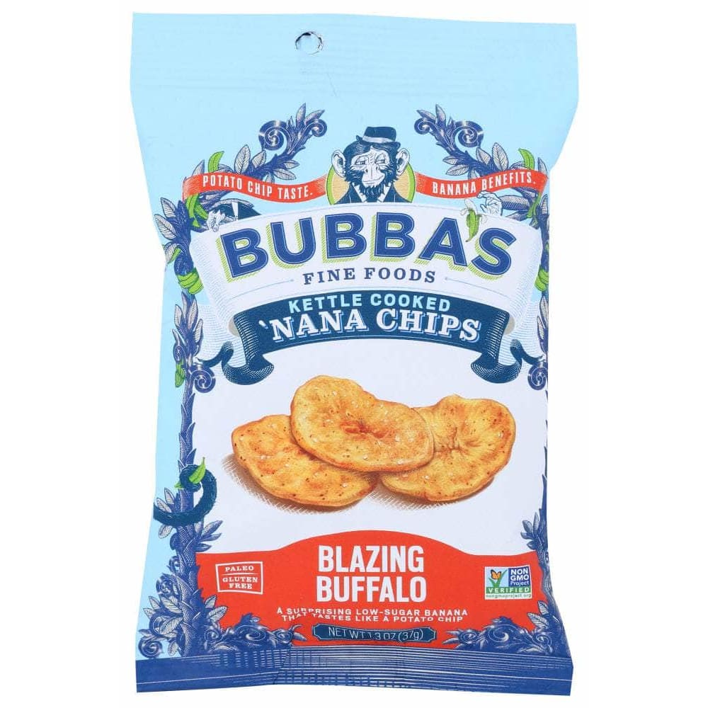 Banana benefits. Potato chip taste.You can take Bubba's Blazing Buffalo Banana Chips just about anywhere with this convenient grab and go size. With low-sugar, kettle cooked bananas and real food buffalo wing spices, our these 'nana chips have the zing you crave without the real ingredients you need.Throw a bag in the car, put a bag in your backpack or just eat it right on the spot. Bubba's single serves are the perfect way to have your favorite paleo snack with you any time of day.