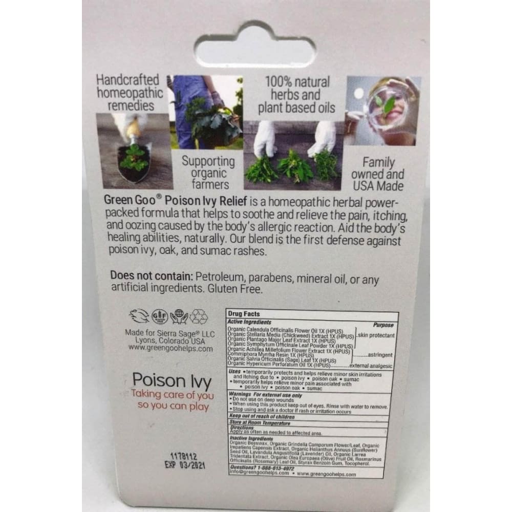 Green Goo Poison Ivy is our homeopathic formula that helps to soothe and relieve the pain, itching, and oozing of a poison ivy rash while naturally aiding the body™s healing abilities. Our proprietary blend is the first defense against reactions to poison ivy, oak, and sumac.