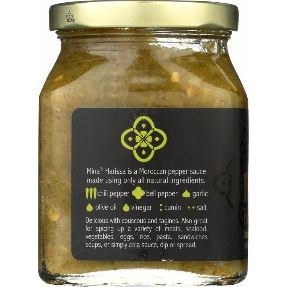 The Green Harissa is Mina’s surprisingly hot green pepper sauce. Made with a variation of Mina’s special blend of simple ingredients - including green chilies, and Moroccan cumin - this Green Harissa is perfect for a more playful palate; making every day dining deliciously different.