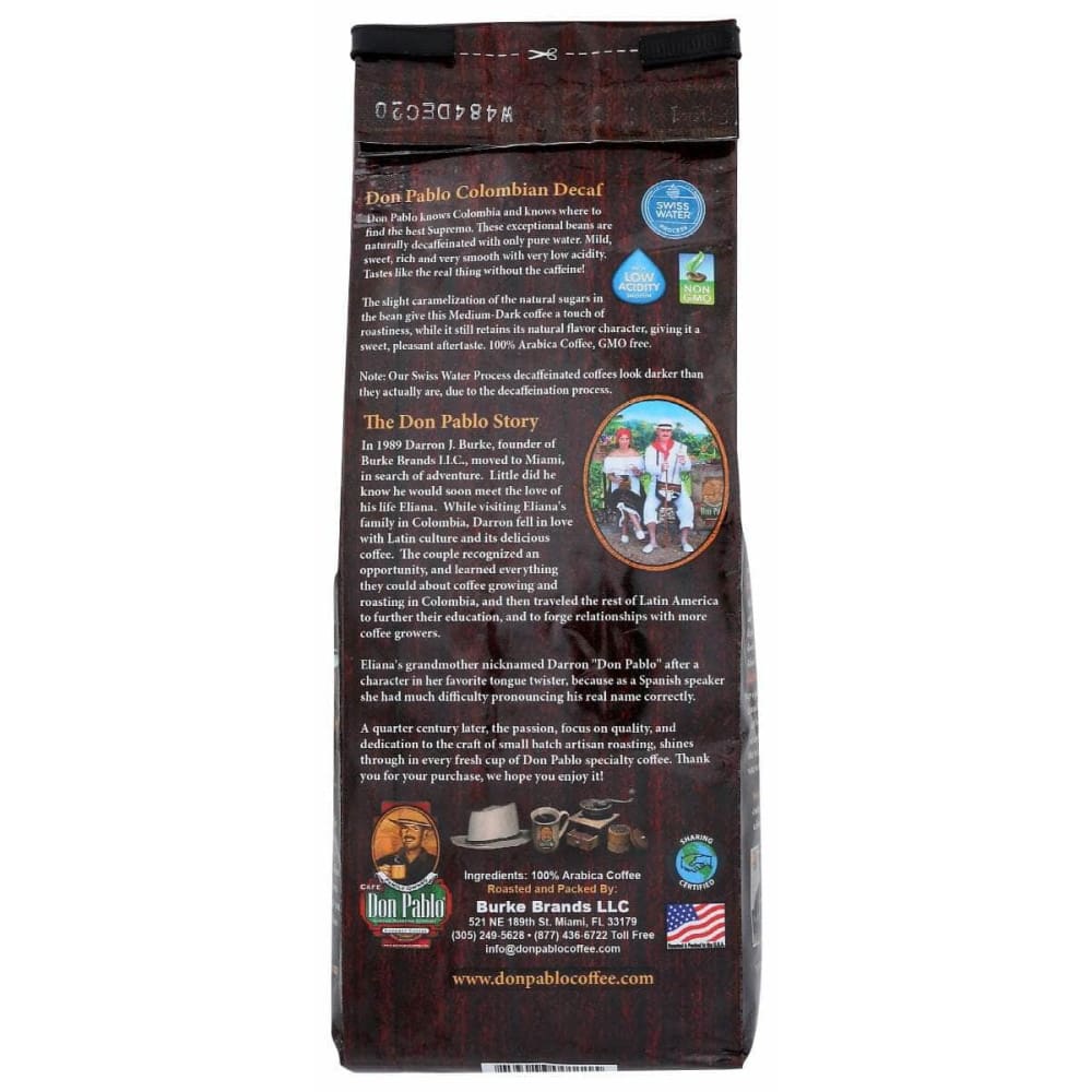 DON PABLO: Ground Colombian Swiss Water Decaf Coffee, 12 oz (Case of 2)
