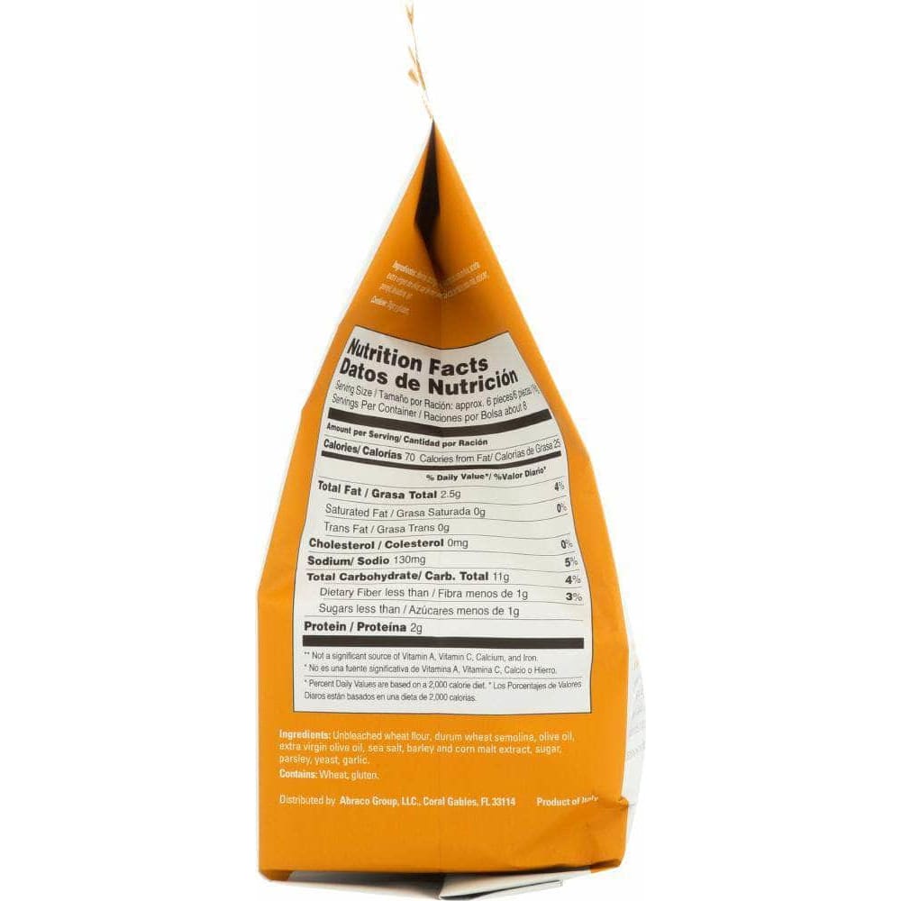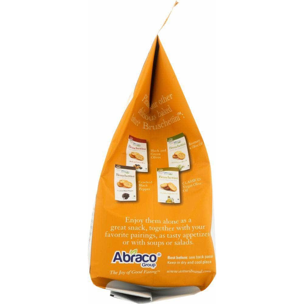 All natural Asturi Bruschettini - bruschetta toasts are baked using only the highest quality olive oil and a sprinkle of sea salt. They are the perfect snack all by themselves, or topped with almost anything, a great appetizer for any occasion. With their enticing flavor and toasted to perfection, Asturi Bruschettini are a little bite of Italy. That's because each Asturi Bruschettini is baked in Italy, using age-old artisan recipes and all natural ingredients. Asturi Bruschettini contain no preservatives or artificial flavors.