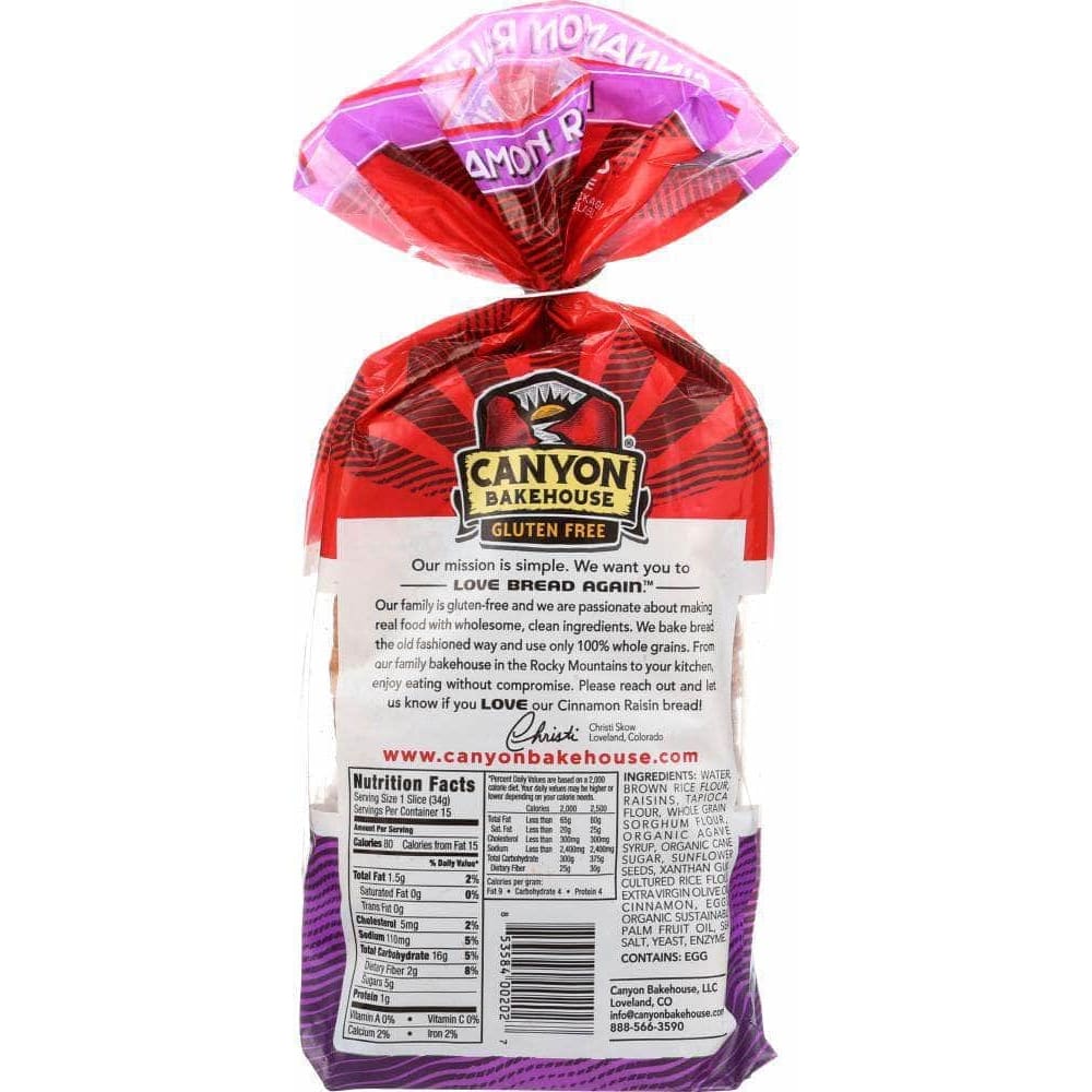 Canyon Bakehouse Cinnamon Raisin Bread Gluten Free, 18 oz (Case of 3)