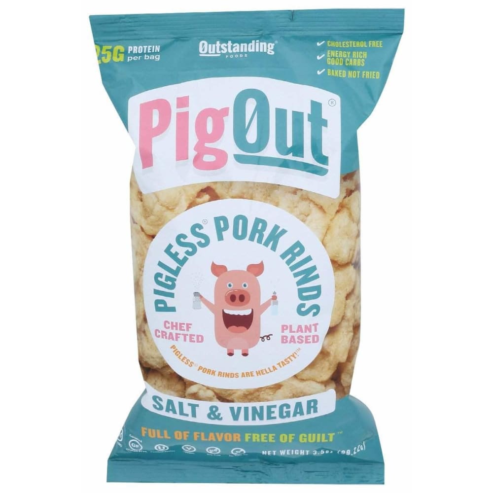 Pigout Pigless Pork Rinds Salt & Vinegar, 3.5 Oz (Case of 4)