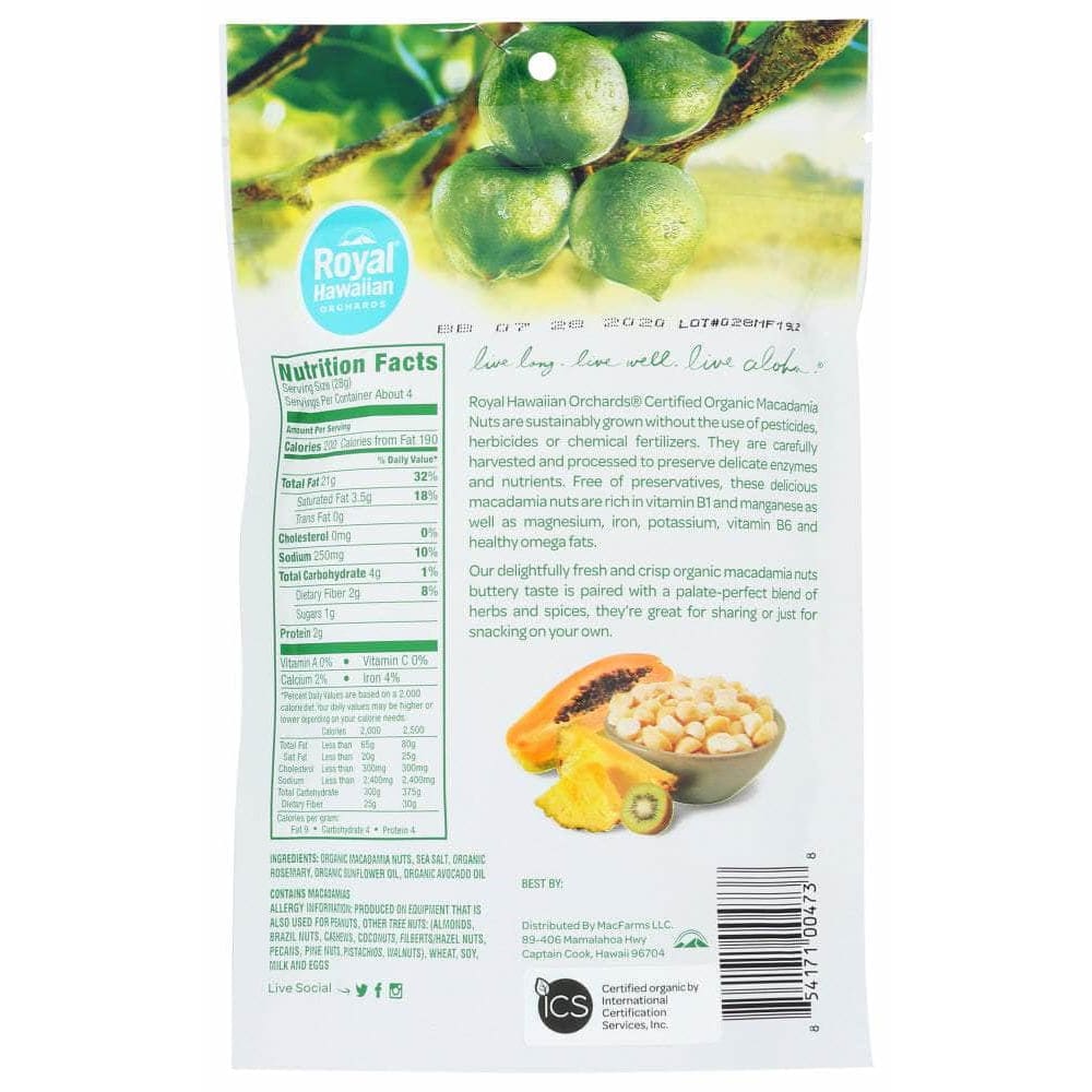 Royal Hawaiian Orchards Organic Rosemary & Sea Salt Macadamia Nuts, 4 oz (Case of 2)
