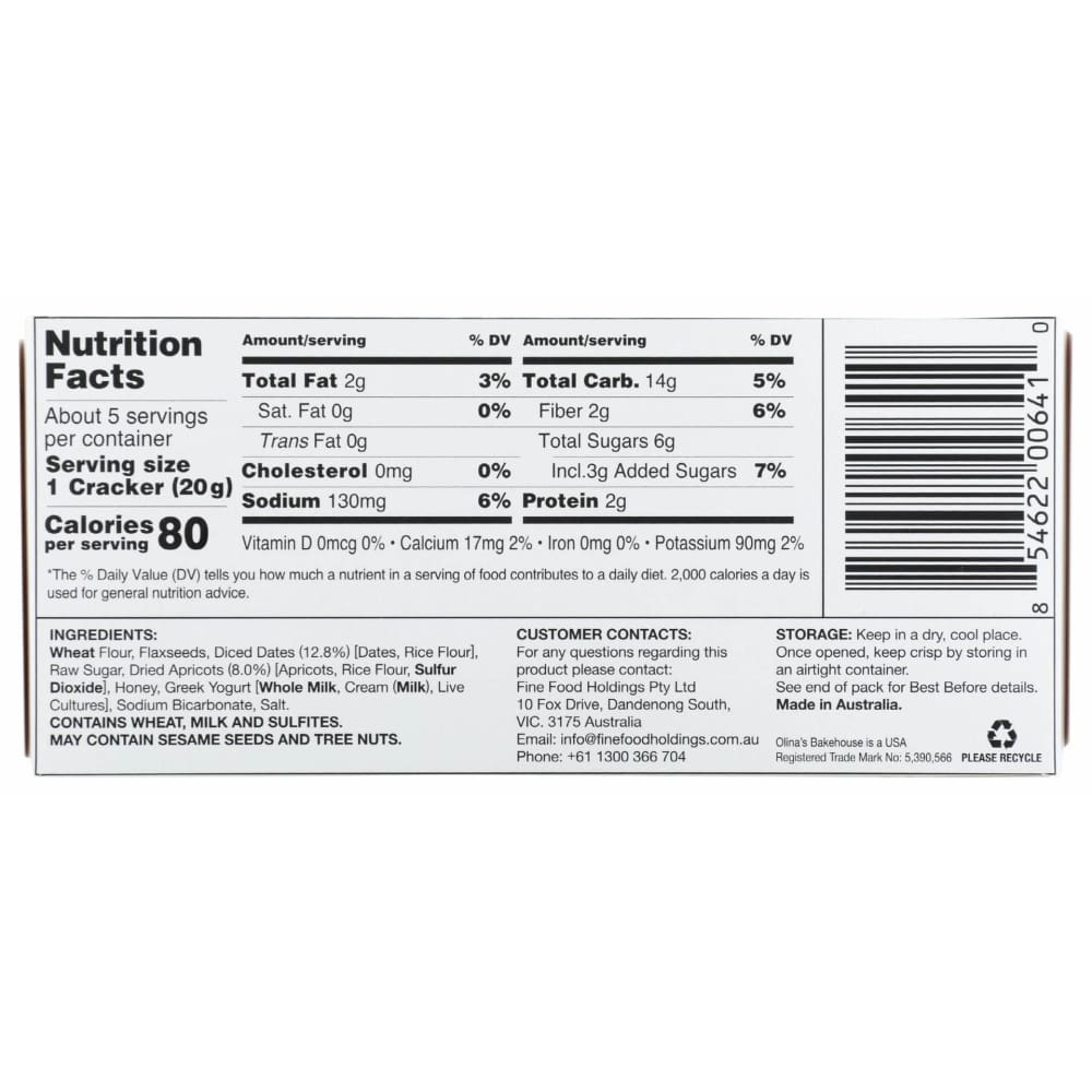OLINAS BAKEHOUSE Date And Apricot Artisan Crackers, 3.5 oz (Case of 4)