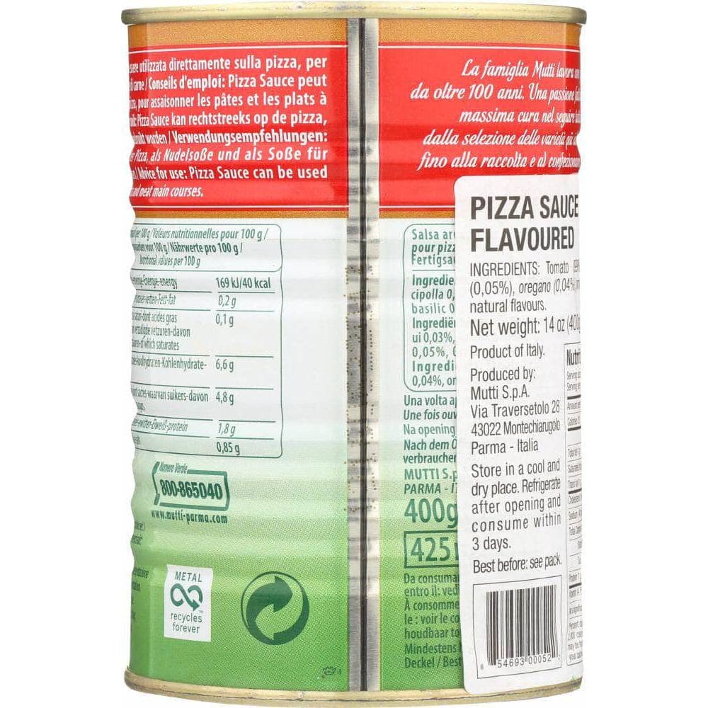 Mutti Pizza Sauce is the ideal way to master the art of Italian pizza. Made from fresh tomatoes, its slightly thicker texture is characteristic of artisanal products. This tomato sauce is seasoned with a hint of oregano and basil, which are the typical flavours used on Italian pizzas. Packaging: can and pouch.