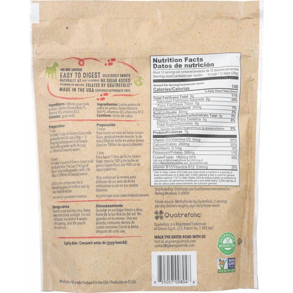Green Goat is made from 100% fresh Non-GMO Project Verified, Certified Glyphosate-free, and Kosher certified whole goat milk. Glyphosate is an active ingredient in many major weed killers! Be More Nourished: Not only is goat milk easy to digest, but it is packed full of healthy fats and minerals that are more bioavailable compared to cow milk, Goat milk is known as the 'universal milk' because it's hypoallergenic for many people. Even those with lactose intolerance can tolerate goat milk because of its special proteins. Re-sealable convenient packaging,