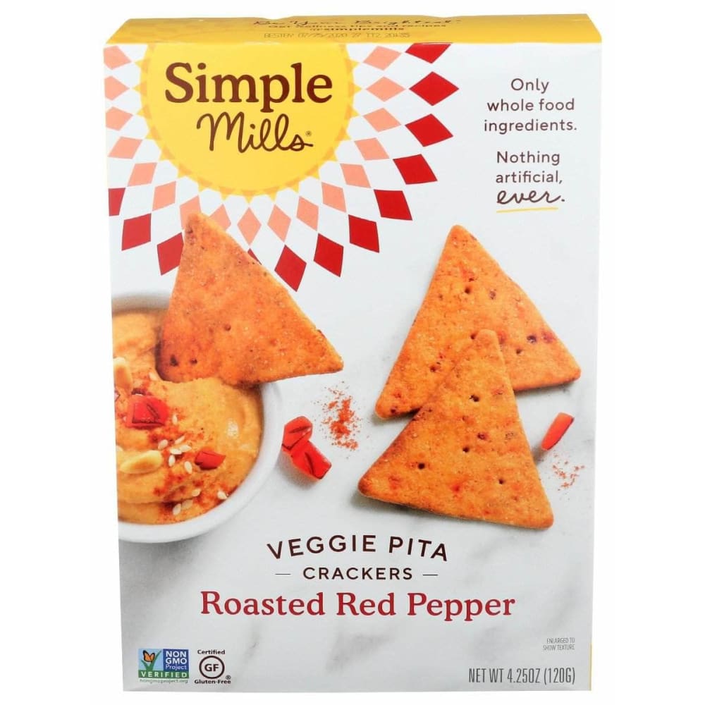Simple Mills Roasted Red Pepper Veggie Pita Crackers, 4.25 Oz (Case of 4)