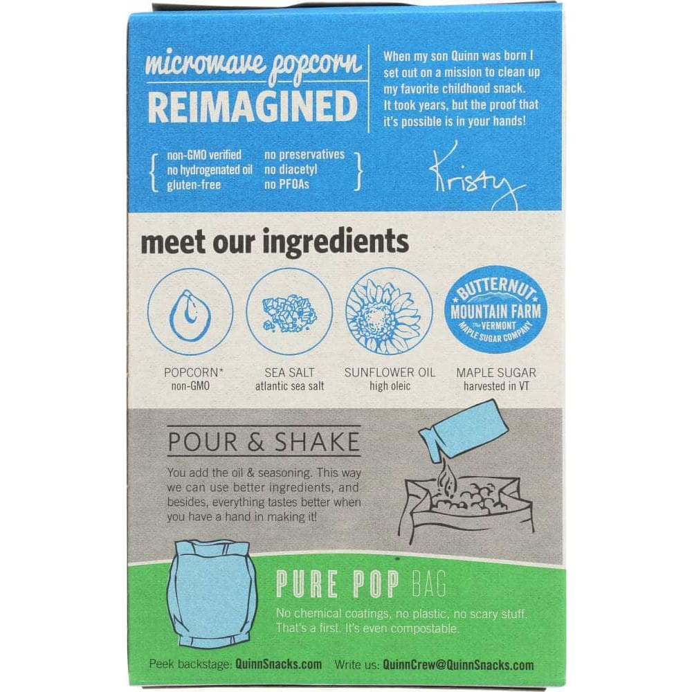 Quinn Popcorn Vermont Maple & Sea Salt Microwave Popcorn 2x3.5oz Bags, 7 oz (Case of 4)