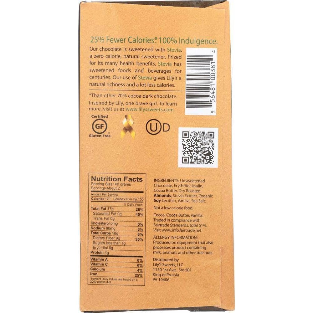 Lilys Sweets Salted Almond Dark Chocolate Bar, 2.8 oz (Case of 4)